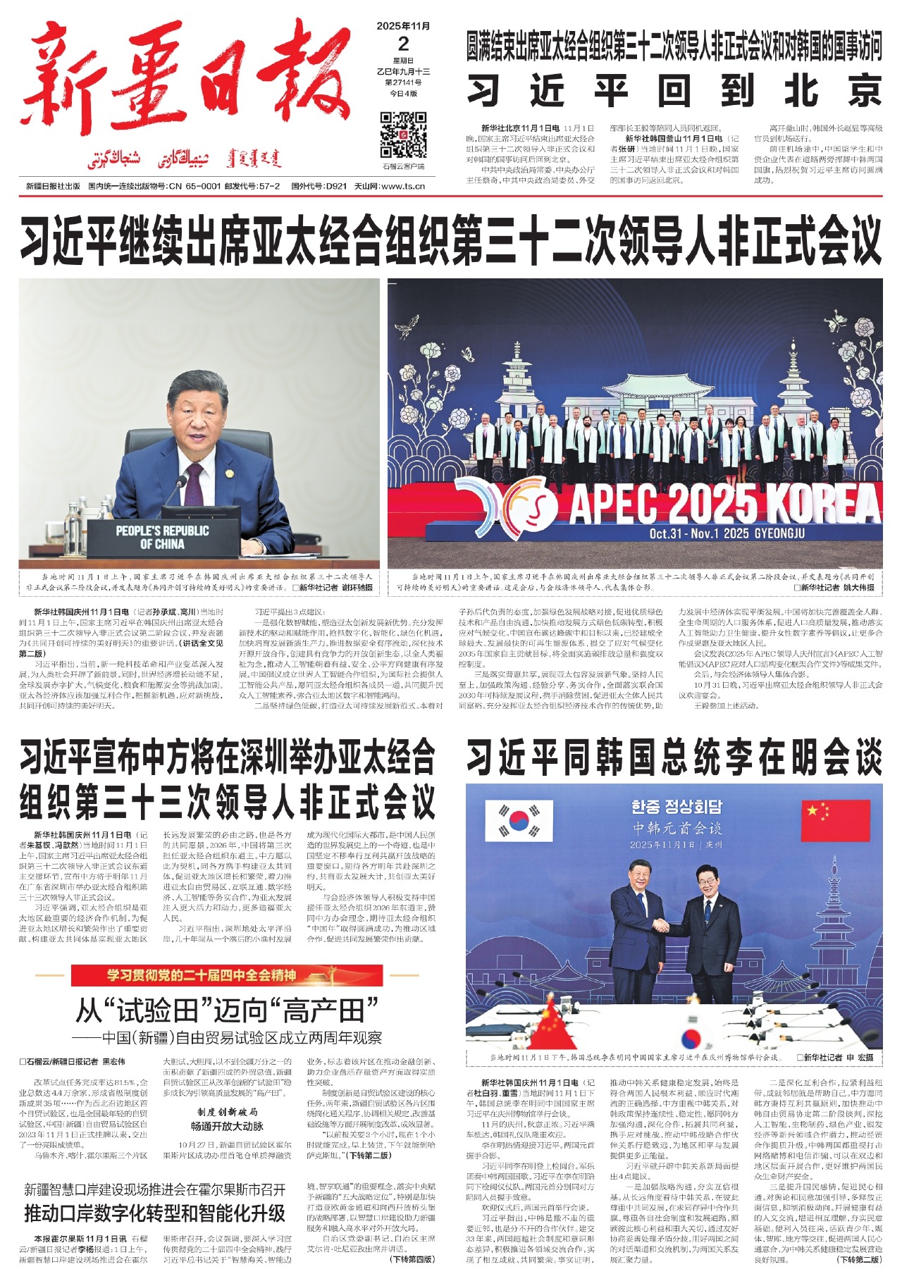 習(xí)近平結(jié)束出席APEC第三十二次領(lǐng)導(dǎo)人非正式會(huì)議和對(duì)韓國(guó)的國(guó)事訪問(wèn)回到北京 深刻把握時(shí)代大勢(shì) 指引亞太可持續(xù)發(fā)展 為開創(chuàng)亞太和世界更加美好的未來(lái)匯聚強(qiáng)大合力